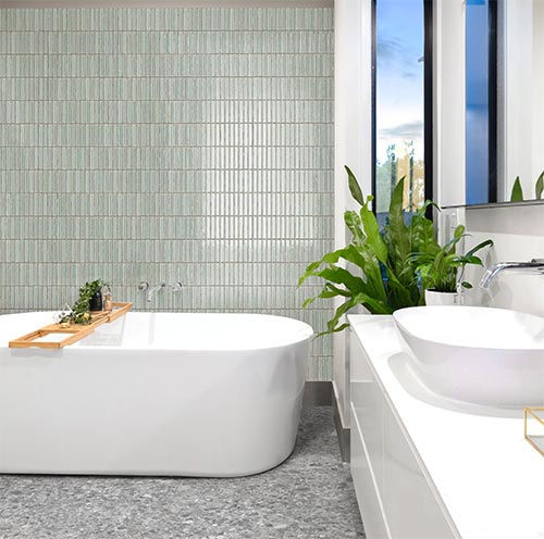 Akari comes on a 300 x 300 mm tile that is scored to Fingers format and Squares format. When installed and grouted, Akari tiles create the look of a seamless mosaic.